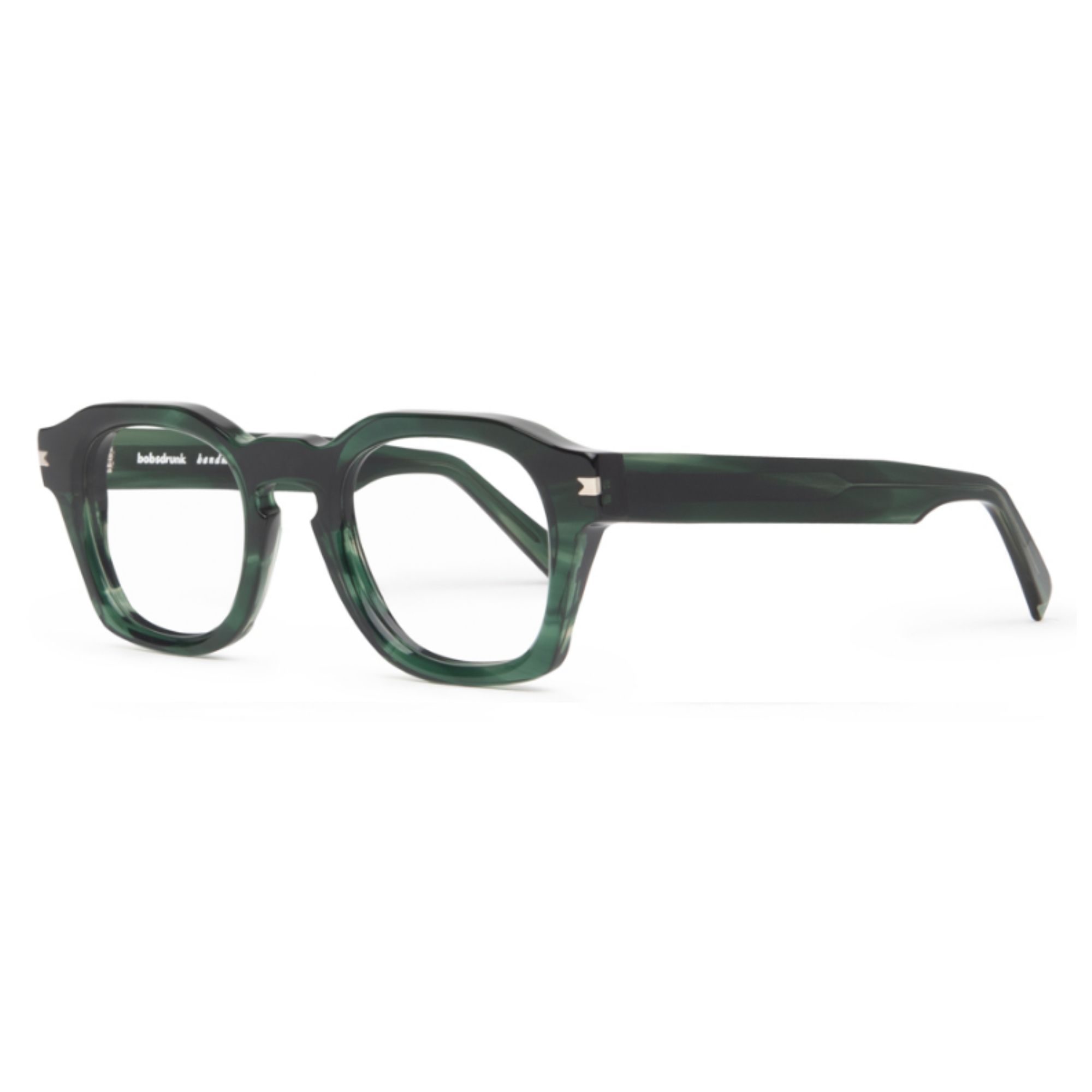 Occhiale da vista in acetato verde scuro sfumato, dal look profondo e sofisticato. Frontale squadrato e aste robuste per una montatura moderna, ideale per chi vuole distinguersi con eleganza.